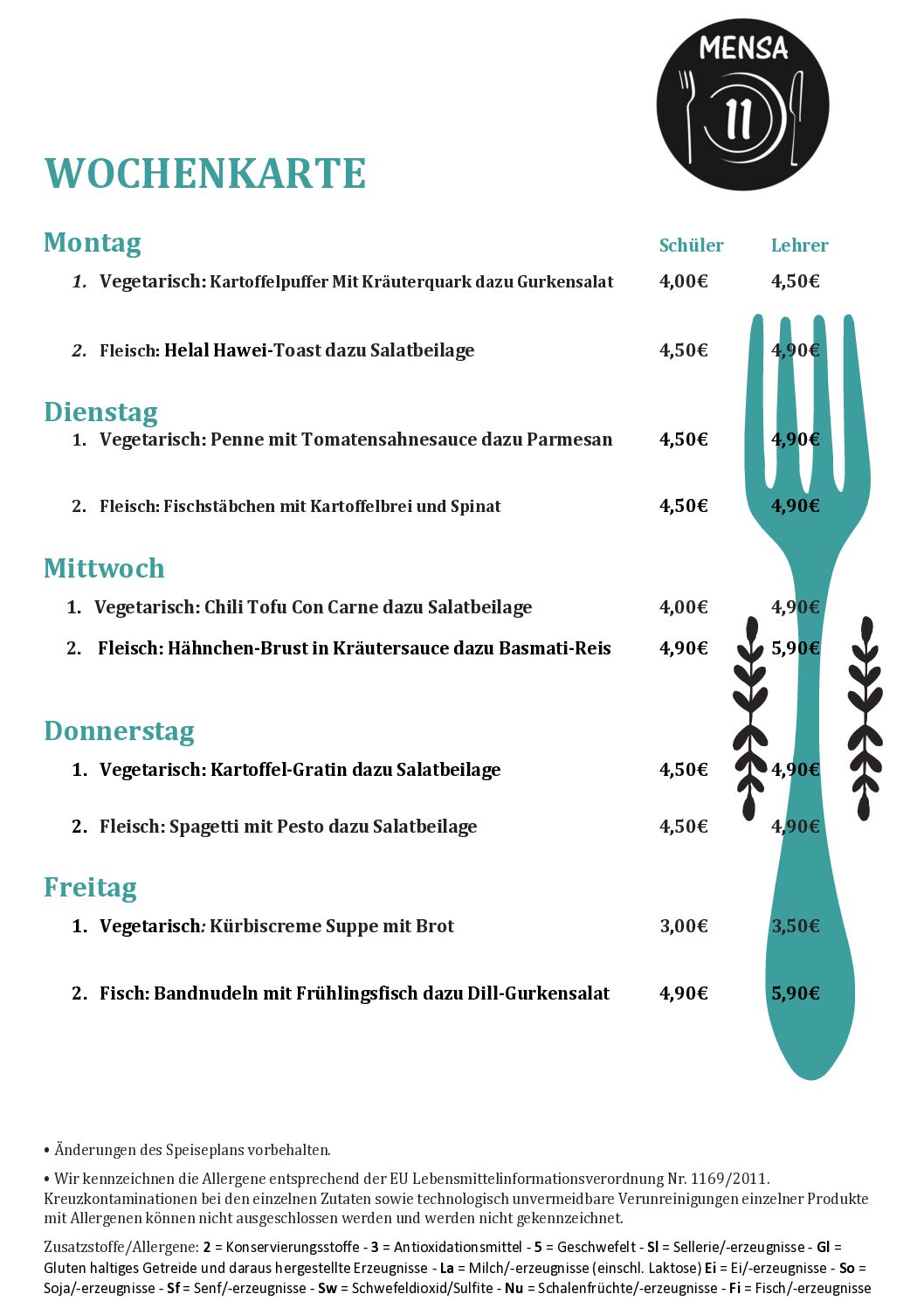 Wochenkarte Mensa 11