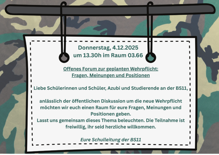In der Zeit vom 24.-28.11.25 findet die Lehrerkammerwahl statt. Infos dazu erhaltet Ihr Lehrerzimmer.